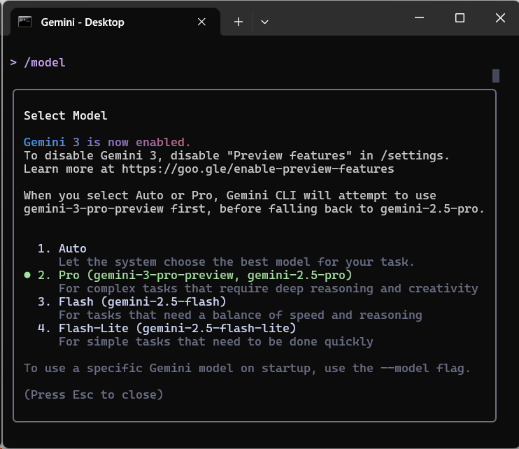 Gemini CLIでGemini3.0 (gemini-3-pro-preview)を使用するには